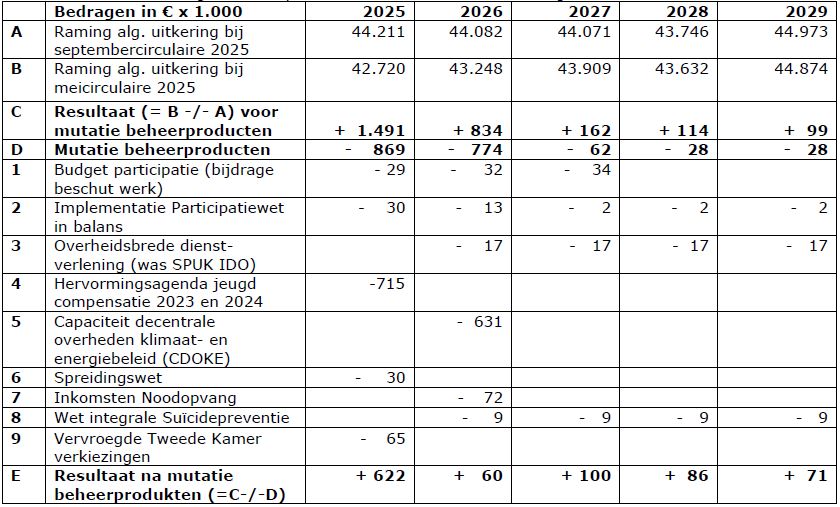 Algemene uitkering, uitwerking septembercirculaire 2025